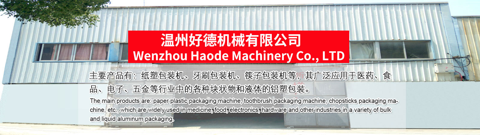 溫州好德機械有限公司(原瑞安市金德機械有限公司)位于祖國的東海之濱,美麗的飛云江畔——瑞安。 瑞安素有“東南小鄒魯”的美譽,是中國著名的包裝機械、制藥機械、包裝機械及食品機械的科研研發(fā)、生產(chǎn)制造、銷售服務(wù)于一體的全方位、多功能科技企業(yè)。